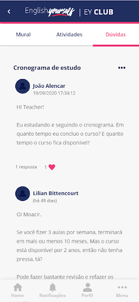 Em 2 meses de construção de interfaces e novos fluxos não previstos no MVP. Entregamos o app e adicionamos um bot como apoio a potenciais dúvidas dos alunos.