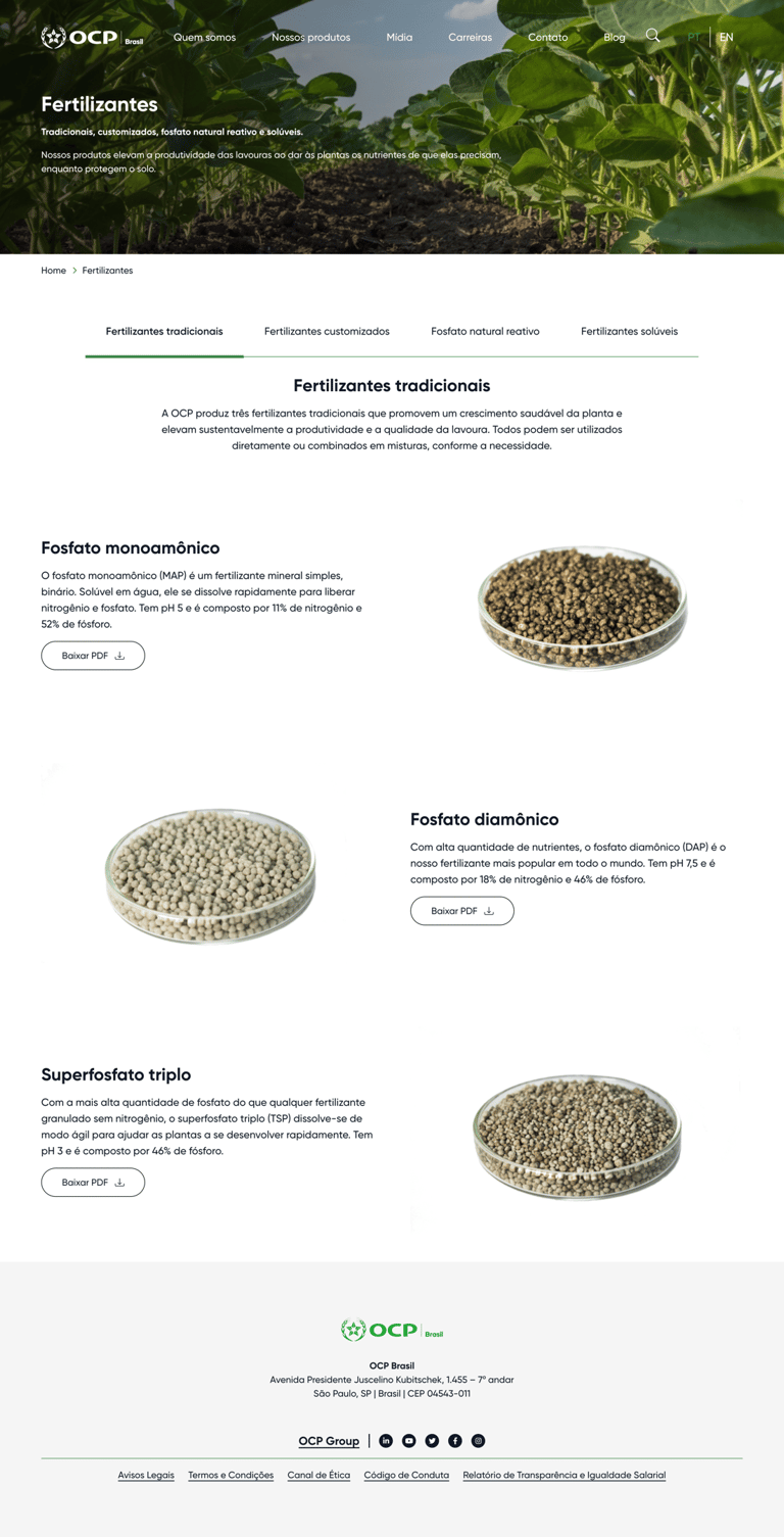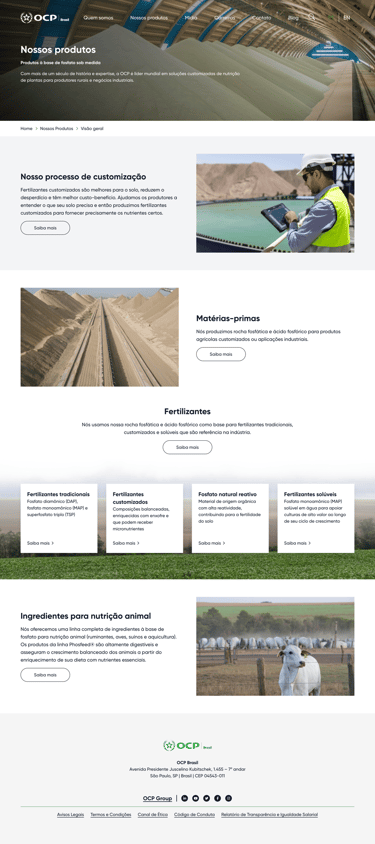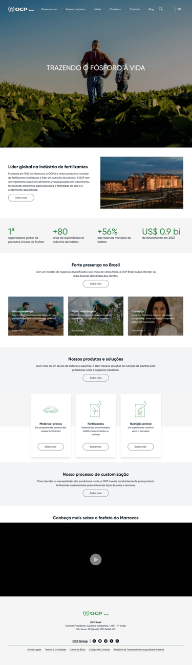 Construção do site no Brasil da OCP - A maior produtora mundial de fertilizantes fosfatados e líder em nutrição de plantas.